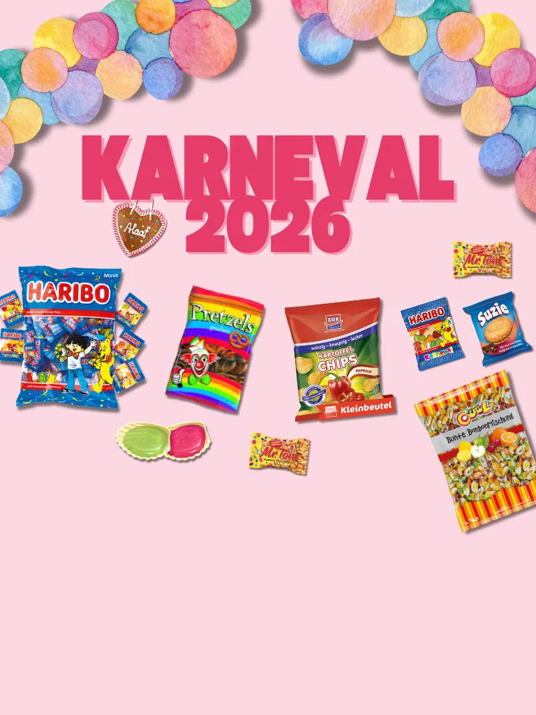 We proudly present – die Karneval Stars aus unserem Süssigkeiten Shop, die Kamelle! Einst aus karamellisierter Zucker für den samtig-schmelzigen Auftritt auf der Zunge sorgend, finden Sie heut die Kamelle in sämtlichen Karnevals-Outfits vor. So tümmeln sich mittlerweile auch gern Popcorn, Lutscher, Schokoladen oder Gummibärchen unter den expressiven Inszenierern der puren Lebensfreude. D`r ,,Zoch kütt ? Dann schauen Sie schnell in unsere Rubrik ,,Karneval Wurfmaterial“!